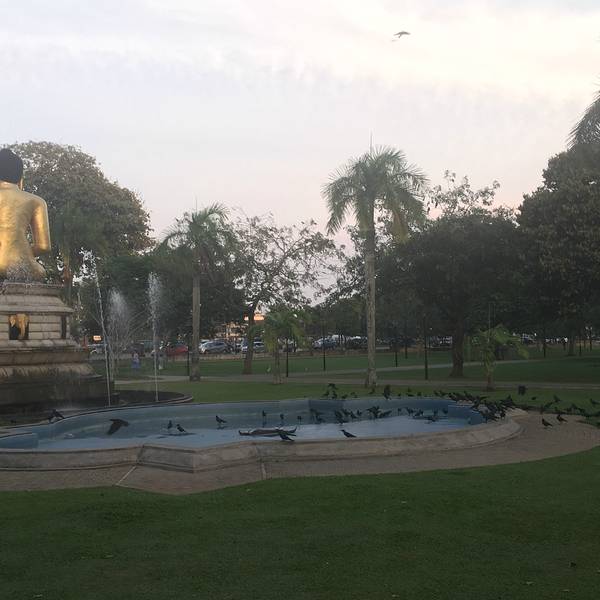 公园的整体环境算不错的,有几个很大的喷水池和一座巨大的佛像。公园里随处可见的乌鸦在科伦坡市政厅对面就是维哈马哈德维公园。是一个巨大的圆形公园,里面人比较多,有跑步的有看书的有聊天的,而且满天都是乌鸦,我在斯里兰卡还真没看到过其他鸟,只有乌鸦,随时都听得到嘎嘎叫。乌鸦被斯里兰卡...在科伦坡市政厅对面就是维哈马哈德维公园。是一个巨大的圆形公园,里面人比较多,有跑步的有看书的有聊天的,而且满天都是乌鸦,我在斯里兰卡还真没看到过其他鸟,只有乌鸦,随时都听得到嘎嘎叫。乌鸦被斯里兰卡的人奉为神鸟,所以看到路上有乌鸦,千万不要去打它,不然你可能会被打hhhhhhhhhh。公园的整体环境算不错的,有几个很大的喷水池和一座巨大的佛像。 展开