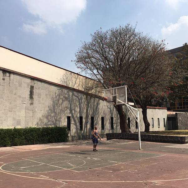 涂鸦外墙的图书馆。独自在球场上投球,准头惊人的白眉老爷爷。校内的小松鼠。