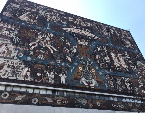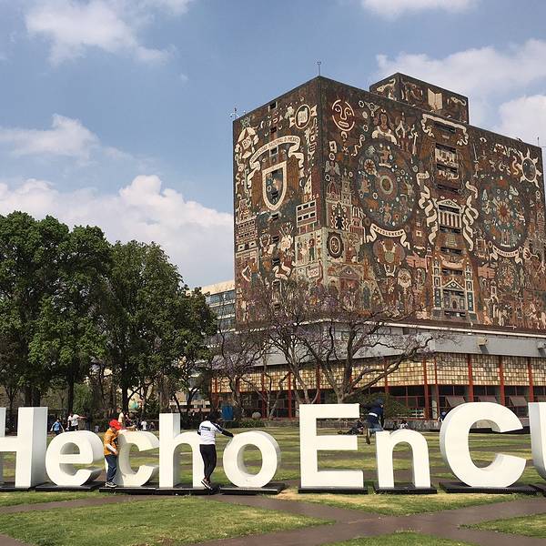 墨西哥国立自治大学城(Universidad Nacional Autónoma de México)建于1949年至1952年,60多名建筑师、工程师和艺术家参与了这项工程。它拥有悠久的历史,是墨西哥最好的也是整个拉美排名最高的大学之一,除了众多的学者外,这里还以精美的建筑和优秀的足球传统出名。UNAM大学的前身是皇室和罗马教会大学。原址在市中心,上个世纪50年代逐渐迁移到现在的大学城。UNAM校园占地面积庞大,环绕整个校区有专门的观光巴士。 2007年,UNAM大学被联合国教科文组织定位世界遗产,正是因为校园内集中在北部的杰出建筑。墨西哥国立自治大学城校园体现处独特的20世纪现代风格,融合了城市化、建筑、工程、景观设计和艺术,尤其是中央图书馆(BibliotecaCentral)外立面上的10层楼高的马赛克画。同时借鉴了当地传统,特别是前西班牙殖民统治时期的历史沿革。校园具备突出的社会和文化价值,获得广泛赞许,并跻身拉丁美洲最重要的标志性建筑之一。