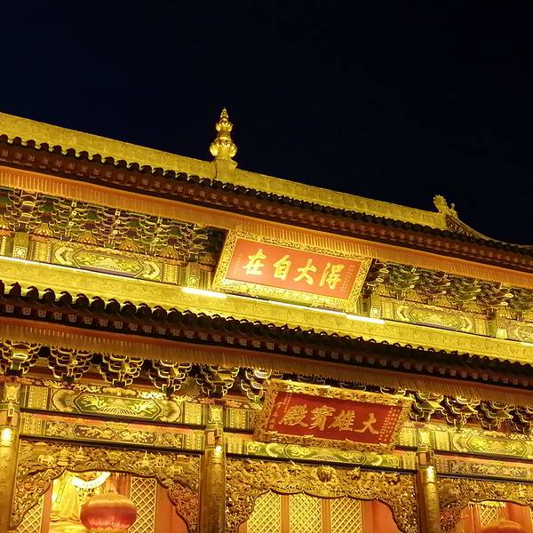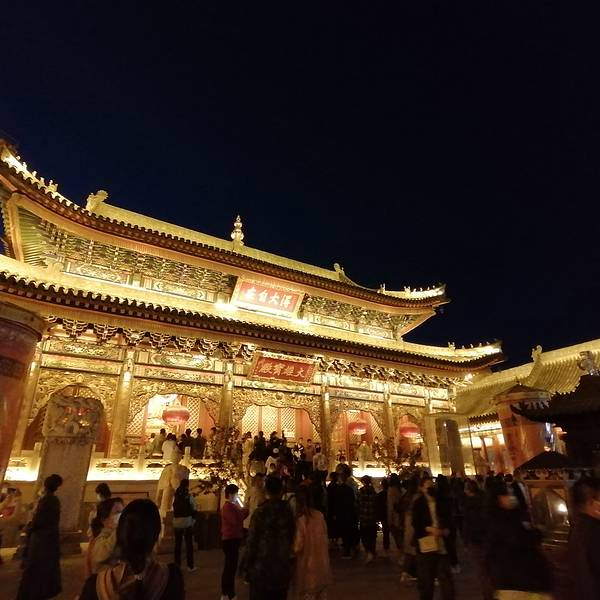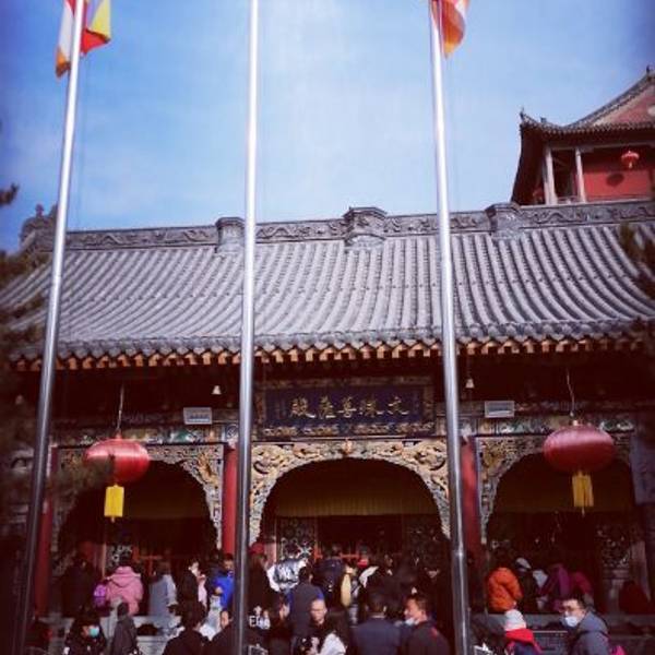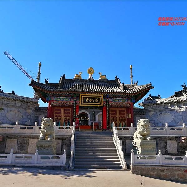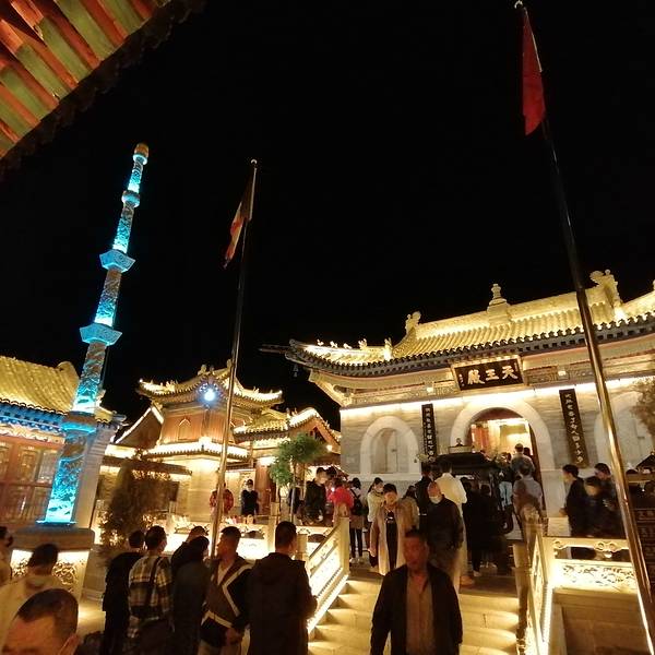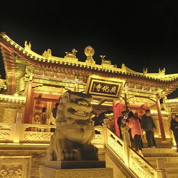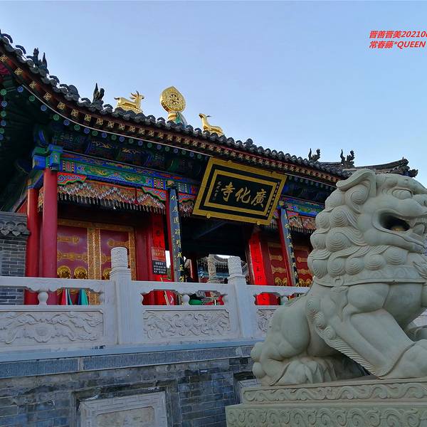 白天的广化寺很安静,游客很少,喜欢闲逛的不妨进去走走,很漂亮的寺庙。给寺院增添了一道靓丽的色彩这次来五台山,再三选定客栈,在广化寺旁边入住,方便夜游“网红寺庙”-广化寺。白天的广化寺很安静,游客很少,喜欢闲逛的不妨进去走走,很漂亮的寺庙。如今我们看到的广化寺的大部分建筑,是清代道光年间由一位...这次来五台山,再三选定客栈,在广化寺旁边入住,方便夜游“网红寺庙”-广化寺。白天的广化寺很安静,游客很少,喜欢闲逛的不妨进去走走,很漂亮的寺庙。如今我们看到的广化寺的大部分建筑,是清代道光年间由一位喇嘛复建。寺院坐北朝南由高而低,建筑宏阔大气,庄重深幽,有着清代豪华精巧的建筑特色和黄教寺庙的风格,是一座典型的汉地“喇嘛寺院”。寺院的中轴线上布列着山门、天王殿、文殊殿、文殊阁楼,东西寮房有僧舍九间。这里的山门和天王殿是分开建筑的,中间隔开一段距离,有一段宽阔的石阶踏道。火红的祈福带和祝福牌挂的满满的,承载着世人的美好愿望。给寺院增添了一道靓丽的色彩。广华寺历史悠久,是五台山著名的华严道场,在其后殿后至今还保存着一座北宋元丰三年(1080)的一座八角单亭阁式石塔。塔身正面下部刻一方门,门之两侧下方还雕有两位金刚,门之上方为一竖匾,上书“宋故金坛郎十宫德之塔”,字体刚劲有力,似为瘦金体。该塔通身由青石雕成,雕刻华丽细腻,十分典雅精致。大红色的围墙很适合拍照,南无大智文殊师利菩萨--被红墙衬托的很有禅境。晚上游客排队拍照。2019年,经过广化寺众僧的策划,广化寺被打造成一座夜景绚烂,金碧辉煌的“网红寺庙”,这是五台山唯一一座晚上开放供游人参观的黄教寺庙。广化寺这座已有千年岁月的古刹,浓缩着厚重的历史文化,经历了从华严道场到章嘉五处的更新,历尽了岁月沧桑,近年来寺院修缮一新,成为游客晚上夜游五台山寺庙的唯一去处。晚八点,无数的游客涌入广化寺,停车场满场。人声鼎沸,门庭若市,烧香拜佛的的香客络绎不绝,游客摩肩接踵,排队入大雄宝殿拜佛。礼毕,可随意捐香火钱。夜晚的广化寺格外的热闹,灯火辉煌,让整个五台山跳跃。 展开