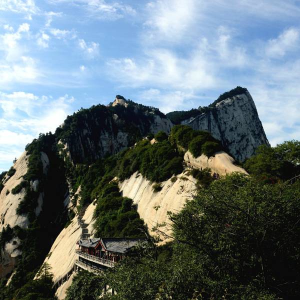 苍龙岭如一条横卧在两山之间的巨龙,在四周山色的映衬下,岭下平台酷似曲卷的龙尾,岭尽处是悬石,如同回首怒吼的龙口。在龙口“云海”石刻下,肖四个圆,其中左侧竖排的两个只有圆周,而无圆心;但右侧两个既有圆周,又有圆心,为华山字谜之首,为“华山第一难题”。若细心悟之,象形文字中,圆表示“月”,圆中有点,表示“日”。据此石刻谜底为“二月二”日。俗有二月二龙抬头之说,在龙口云海下刻此字谜,寓意希望苍龙永远行云布雨,真是恰如其分,匠心独有,精纱绝伦。“虫二”石刻 位于西峰,意为风月无边。 推荐理由:西峰的代表石刻