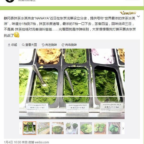抹茶控看过来,爱吃抹茶冰淇淋,一定不要错过号称世界第一的日本nanaya抹茶冰淇淋店。这里的抹茶冰淇淋按照抹茶浓度分成了7个等级,从最淡抹茶味到全世界抹茶浓度最高的抹茶冰淇淋。图 | 去哪儿聪明旅行家@雍容ma...