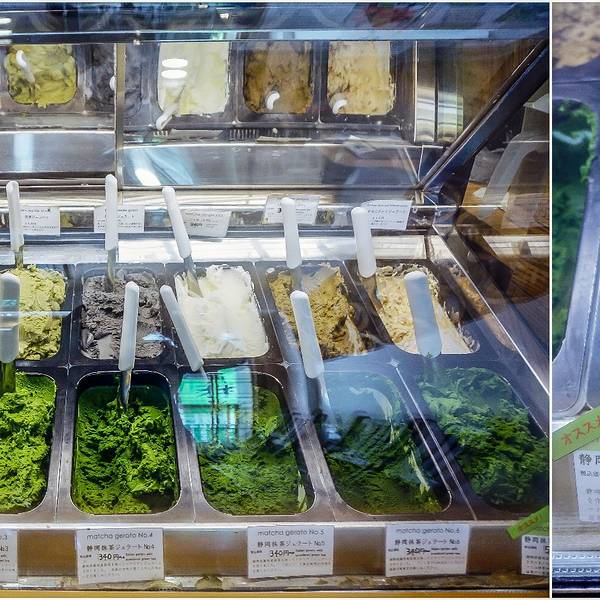 静冈和宇治一样,是日本有名的抹茶之乡,所以抹茶甜品也是一大特色。 这家抹茶冰淇淋店算是 静冈 的网红店了,在东京也有分店。 店内将抹茶按浓度分为七个等级,其中NO.7为最高浓度,据说会苦到怀疑人生╮(╯▽╰)╭ 我们选择了传说中最好吃的NO.3和红茶味双拼,非常safe的搭配,果然好吃。 每一口都能品尝到抹茶的清香,两种味道也很搭,一份比国内的哈根达斯便宜,算是很实惠了~~~在日本吃冰淇淋是刚需!