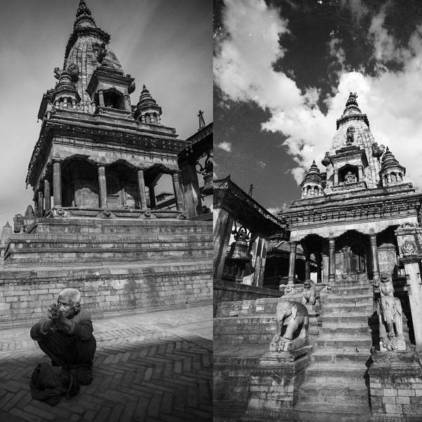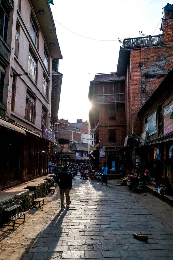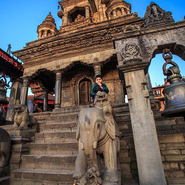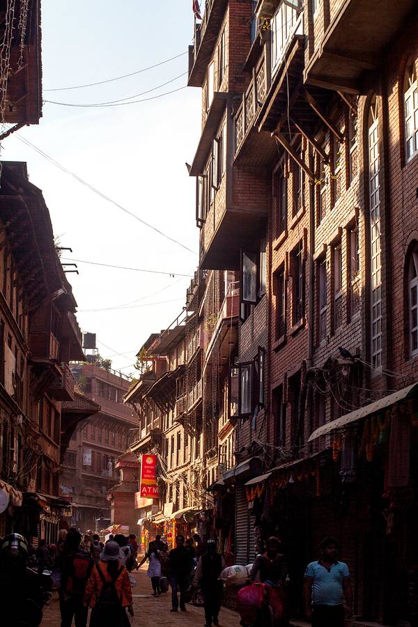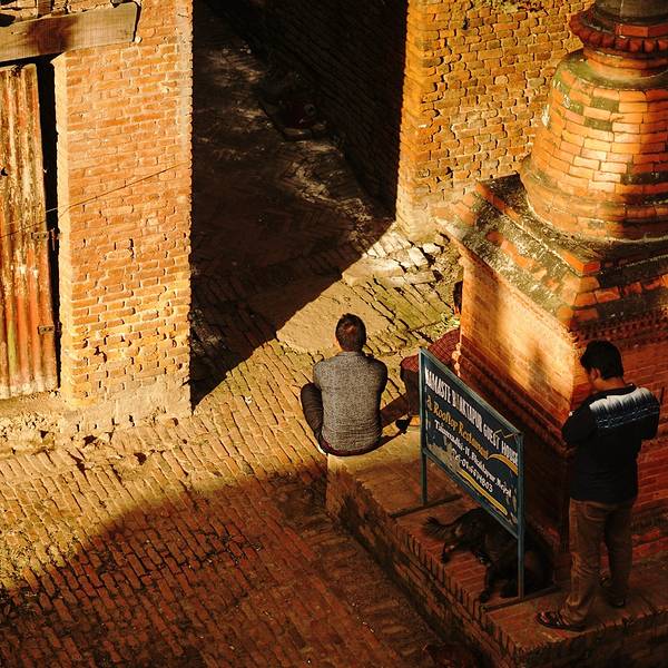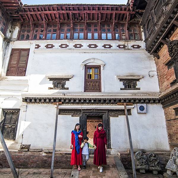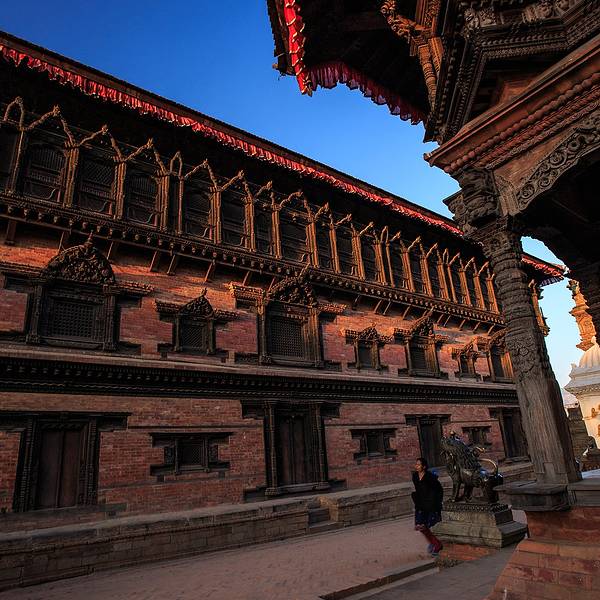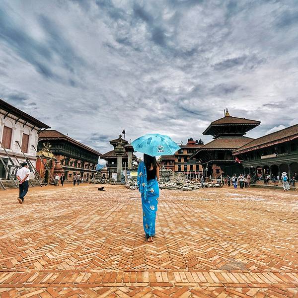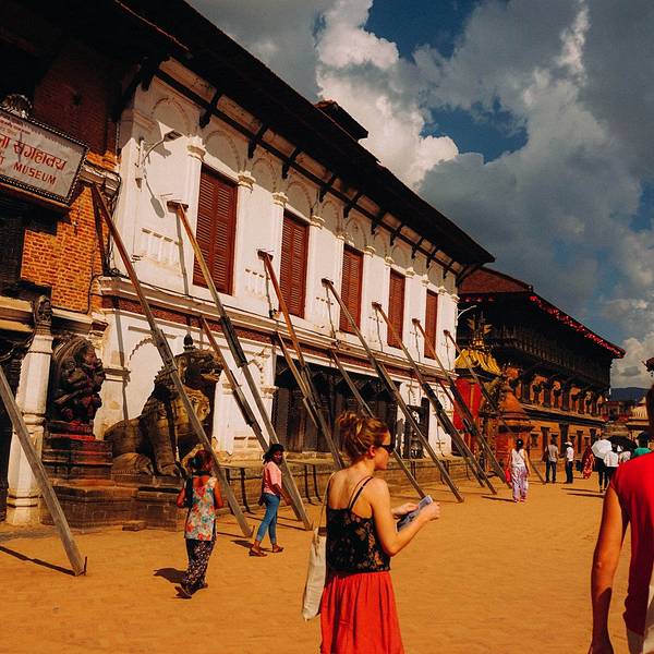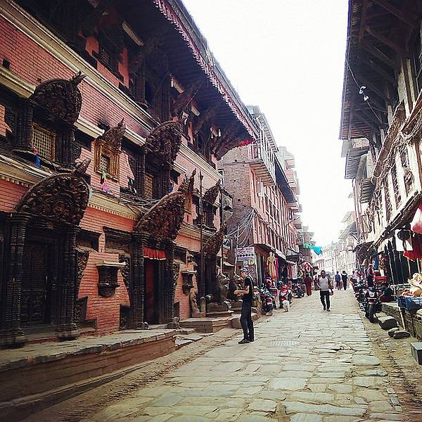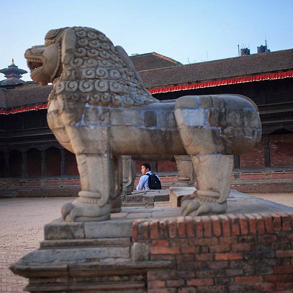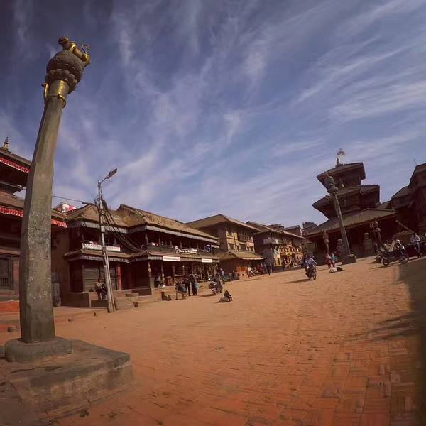 也许是因为早上8、9点的时间,除了忙活的几位老板叔叔(听说他们是一家子),一个住客也看不到,我有点担心但又美好的像在做梦,这时手机收到了封Email,是Booking上修改房费的信息,原来大叔因为我前一晚没入住而主动撤销房费了——有没有太Surprise了!本以为这是一个会白白浪费的住宿费用,没想到真是好开心,躺在床上美滋滋的晒着太阳,一动也不动,我打算先哪儿都不去,这一刻只想把时间用来好好发呆,望着窗外被阳光洒满的田野,如果有个爱人依偎,好像就很完美了。英国 旅行家鲍威尔说,即使整个 尼泊尔 都消失掉,只要 巴德岗 还在,这里就值得你飞跃大半个地球来亲历。因为这句话, 巴德岗 也因此戴上了不同一般的殊荣,然而在我眼里,它的确如此着迷,与众不同。巴德岗 的杜巴广场是 尼泊尔 的三大皇宫广场其中之一,另两个一个在 加德满都 ,一个则在 帕坦 (由于此次时间赶,并没有前往参观)。Planet距离杜巴广场有1公里的距离,客栈大叔可以帮忙接送,我坐在客栈大叔亲自摩托载我的后座上,呼吸着一路的灰尘终于到了 巴德岗 ,回归一个人闲逛的时间,没有目的不需要向导,此刻,我只需要拍摄。