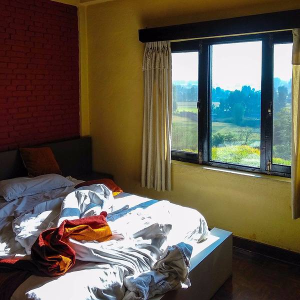 就来到了此行我最爱的客栈——Planet Bhaktapur Hotel,也许是所有的疲劳当看...还好那一夜我们的房间够大,民宿小哥也允许我们3人一起睡,又是一个5点起床看日出的清晨,还好民宿顶楼有个观景台,可以俯瞰360度俯瞰喜马拉雅山脉,不用特意驱车去另一个观景台。