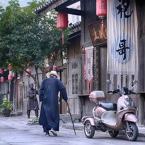 土城“十八帮”文化中的袍哥帮,中国最后一个袍哥:95岁高龄的罗明先,每天游走于古城的青石板上,同游人讲述着古城的旧事,对他来说已经是一种生活状态,对游人来讲,依旧是心中的江湖传奇……告别之后,老先生的身影久久不能挥去,回荡古镇的:袍哥人家,做事绝不拉稀摆带……[微笑]