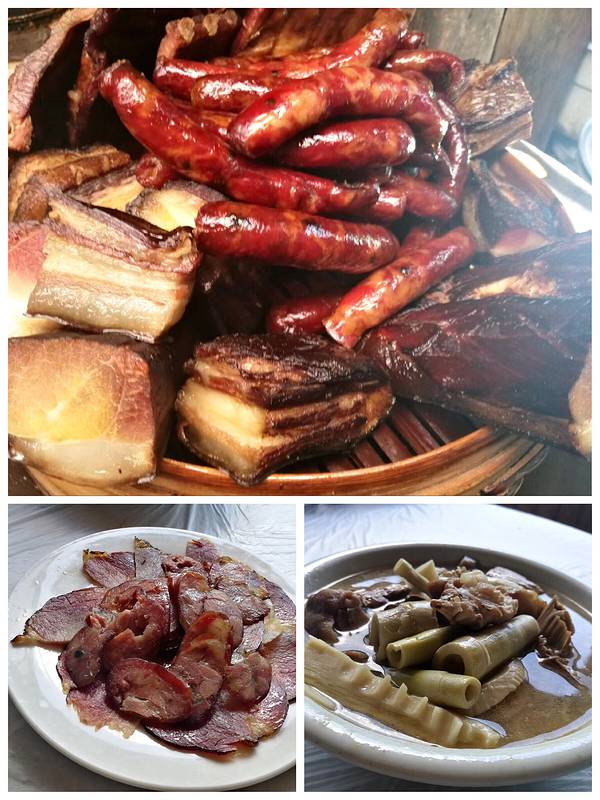 此外家家户户都有腌制的腊肉排骨香肠,切好大小不等的在锅里热腾腾的冒着诱人的香气,忍不住就想尝一口,纯正的农家风味。