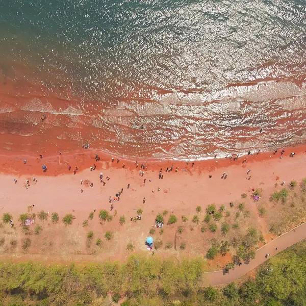抚仙湖还有一处颇具争议的网红粉沙滩——红山咀,某书上有人夸有人劝退,我特地问了当地朋友,他说天气晴时真的会呈现粉色质感,阴天看过去就是普通的砖红色。