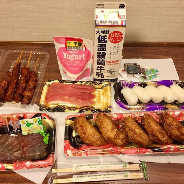 上下通, 熊本 最繁华的商业街,下雨不怕。看到这个真不知道该说什么了,一家游戏厅庆祝新开业,这....... 据说 日本 也是讲究风水的,但可能和我们的还不大一样,例如他们的小区可能会正对神社,可能旁边就是个墓园......鹤屋百货(更正:照片为鹤屋百货本馆, 熊本 熊办公室在东馆一楼,两个馆之间有廊桥)果然关门了,才晚上8点啊~~找了一圈没找到吃马肉刺身的餐厅,最后干脆在一家超市买了些速食回酒店食用,终于吃到了马肉(左下角),尝鲜为主,刺身果然如网友所说像在吃鸡肉。 那个白色的寿司是呼子鱼(乌贼)刺身,比想象中的厚,口感像牡丹虾,但更有嚼劲。烤鸟好吃,炸鸡翅一般。 这款优酪乳千万别买,太酸了!牛奶又太淡了,大阿苏真比不上之前那款小阿苏。在楼下餐厅门口倒了一杯乌龙茶,原本想做乌龙奶茶的,加了一包糖和奶精(都是ucc的),还是淡,倒是泡出了豆奶的味道。当然,夜鸣拉面总是要来一碗的。
