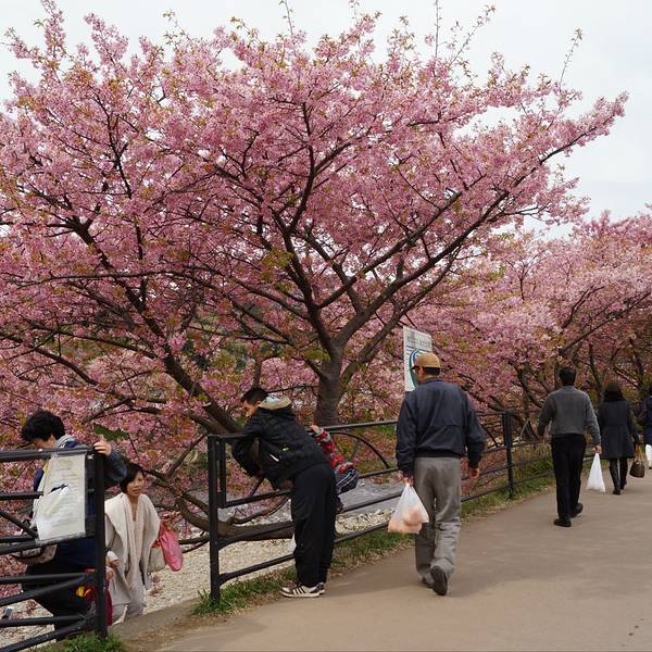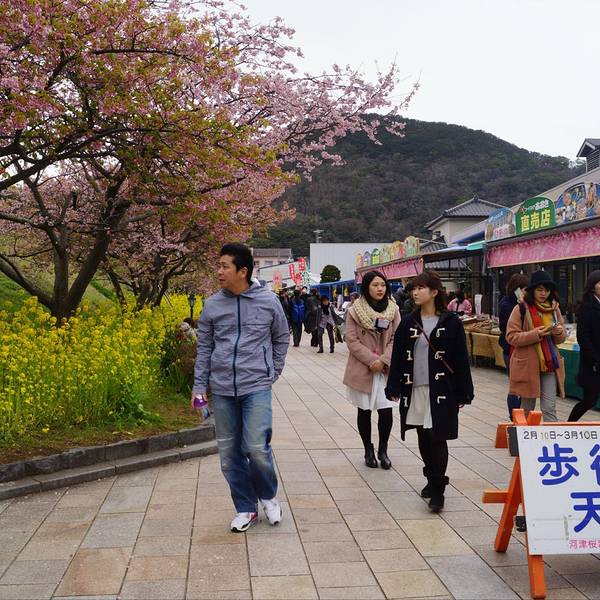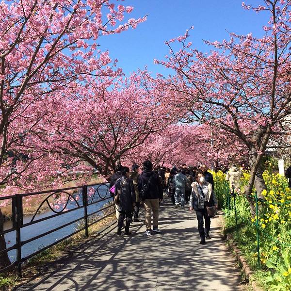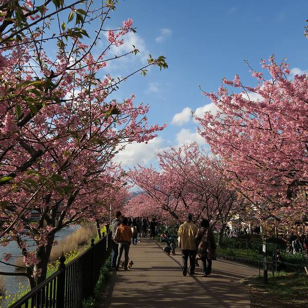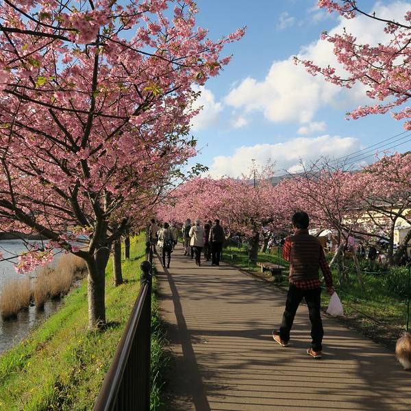 河津樱名闻遐迩,因为它是东京近郊几种最早盛开的樱花之一,而且最显著的特征是花朵大且呈粉红色。河津地区共有8,000棵樱花树,每逢樱花季节来临,这里都会举办「河津樱花祭」,吸引上百万的国内外游客前来参与盛会。
