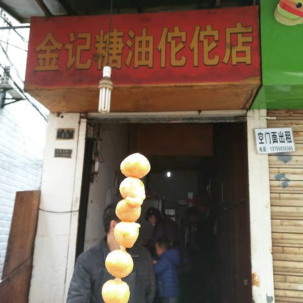 糖油粑粑搓成小圆球,用竹签串起成冰糖葫芦的式样。