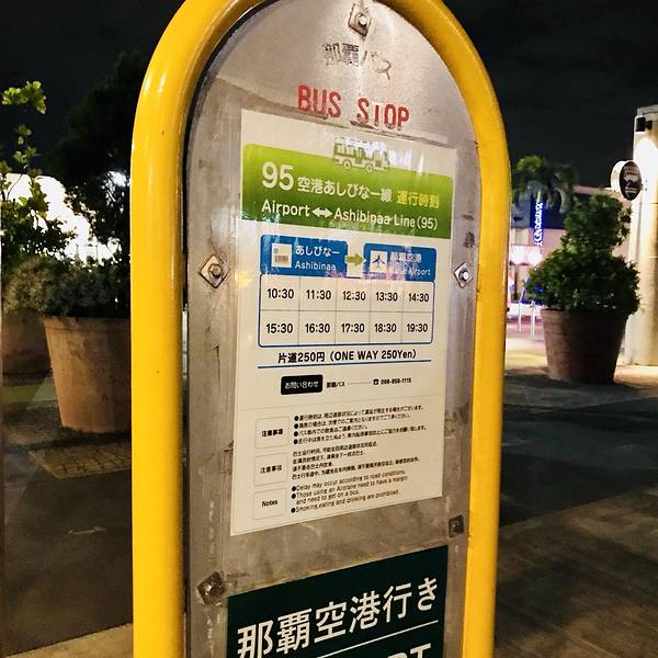 3、单轨+穿梭巴士(也是我的选择):乘坐单轨到达“ 那霸 空港”站或者乘坐一日观光车到达“ 那霸 空港”站,步行至 那霸 国内航站楼前的公交站乘坐95路直达奥特莱斯的大巴车(250円/人)。不过前往 冲绳 奥特莱斯的大巴是整点出发,一小时一班,错过了就要等待一个小时,一定记得提前一小会儿到达站牌处排队上车,因为去的人很多,车满即开,无需取整理券,下车付费。