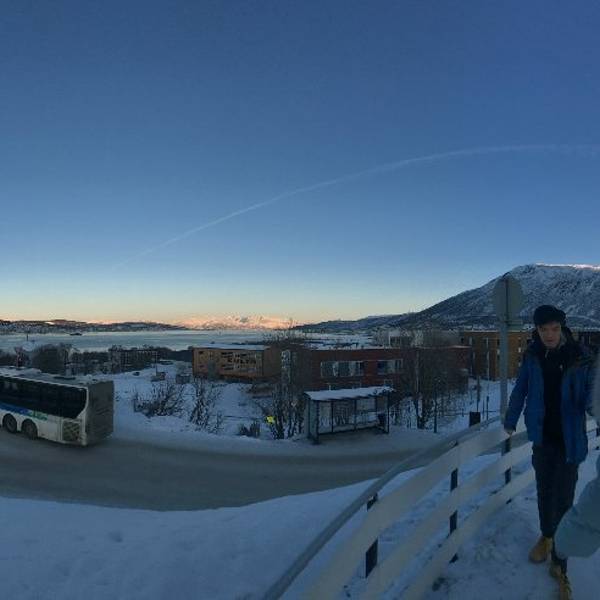 终于穿上了一整套的御寒装备,人就觉得舒服多了,取回自己的三脚架也觉得倍踏实,雄赳赳气昂昂地出门去了。清晨的峡湾岸边没有行人,安静得非常舒服,远处的北极大教堂静静地躺在那里,如果昨天在山顶拍摄的时候也是这般风平浪静就好了。工作照来一张。来一张全景,利用长曝光的效果,海面就像一片镜子一般,一共用了12张竖拍的图片接片而成,不过因为比例的关系这样的全景图变得很小,建议点击一下图片放大看大图。天虽然亮了但云层很厚,一片白茫茫的阴天,留在特罗姆瑟的时间太短了,还没来得及好好地细味这座城市。 展开