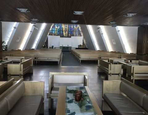 比较有特色,玻璃花窗挺漂亮的,造型也很独特,拍照效果地不错。其实教堂里面挺小的,逛不了几分钟比较有特色,玻璃花窗挺漂亮的,造型也很独特,拍照效果地不错。其实教堂里面挺小的,逛不了几分钟。郁闷的是我们4月上旬来这里,开门时间是下午三点,我们一点过就到了,等好久来开门。