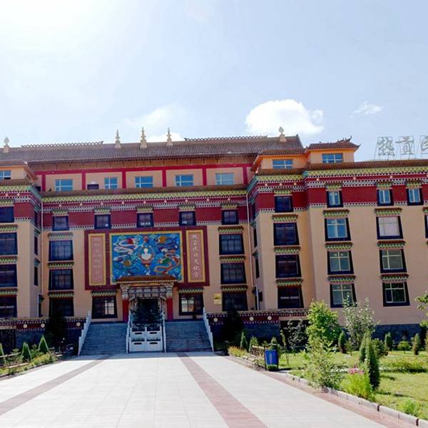 文化宫占地25亩,主建筑由一栋主楼和南北两栋翼楼组成,建筑面积1.5万平方米,主楼5层。整个建筑以藏族特有的黄色和紫色为基调,造型别致、富丽、宏伟、壮观,具有独特的民族风格。文化宫由唐卡博物馆、唐卡创作院、公益学校、图书馆和文化宫禅堂五大部分组成,宗旨是:建设民间公益平台,教书育人造福社会;继承推广传统文化,弘扬佛法利益众生。