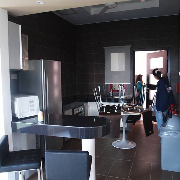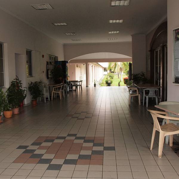 女生宿舍和男生宿舍是严格分开的,男生可以来女生宿舍的餐厅,但不能走更远了。宿舍一共有6栋,每层有电视房(虽然大多数都是看不了的,但电视房有空调,所以很热的时候我见过有其他房间的人把他们的床垫拖出去霸占了电视房……),厨房和公共厕所,每一栋有一个洗衣房还有祈祷的地方。