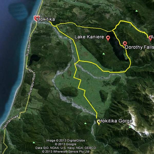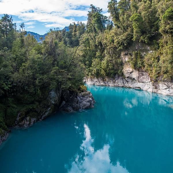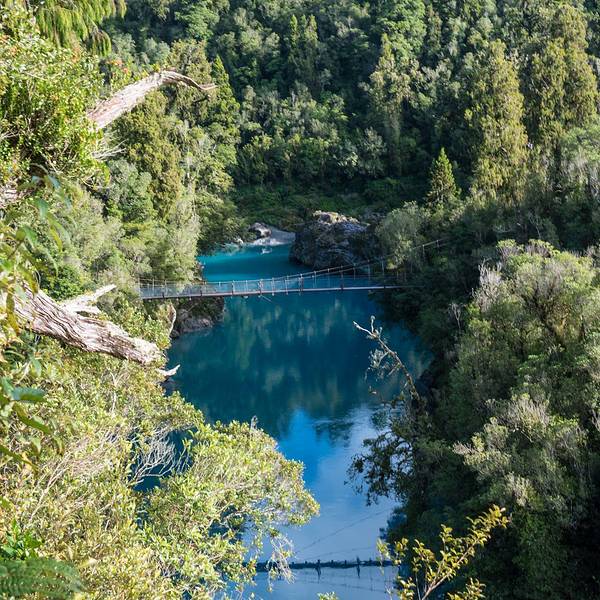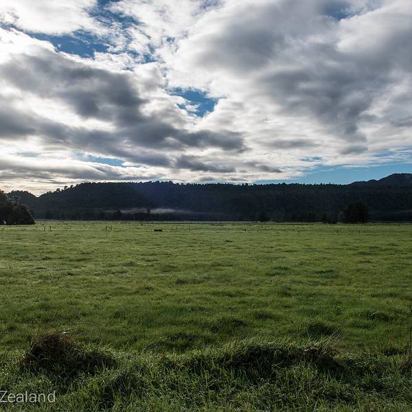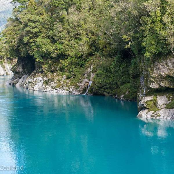 去往景点的路上风景也很好,大面积的草甸,远方的雪山映衬,从这里开始感受到南岛的魅力第一站Hokitika Gorge,这是个冷门的景点,先是在网上看到推荐,然后上google查了一下,被那里湖水的蓝色诱惑了,决定去探个究竟。