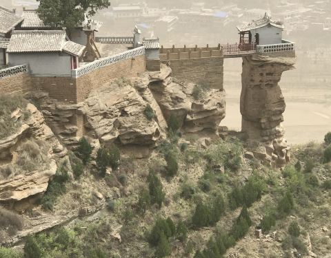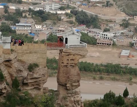 非常值得一去的地方!人不多,地方不大,建在黄河之滨,一石柱上见一小庙,中间悬空过道相连,走在上面腿直发软,在上面看黄河,气势万千。