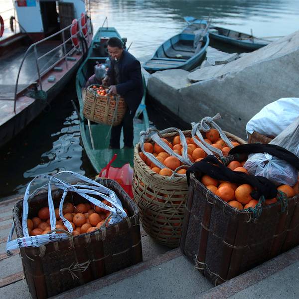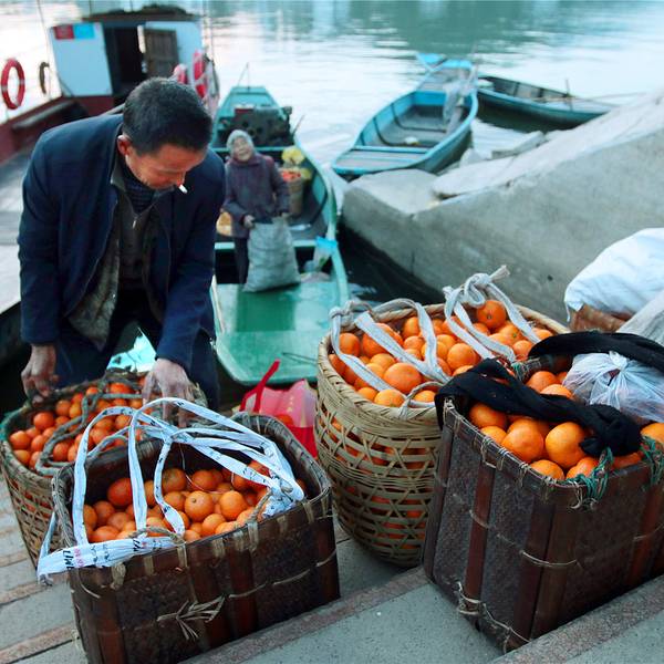 卸柑子。天色开朗后,阳光不错。回去找地儿吃早餐,