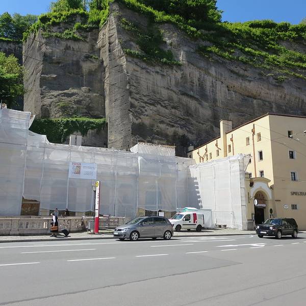 广场位于萨尔茨堡市中心,萨尔茨堡大教堂的南部,广场上有个金色大球,在球上还站立了一个小人,这个雕塑造型前卫和其身后的几百年历史的萨尔茨堡大教堂形成巨大的反差,引得众多游客在这里拍照