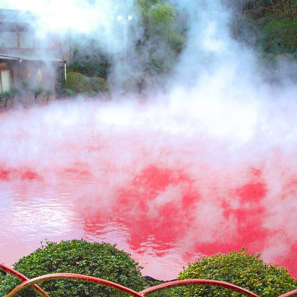 别府八大地狱温泉各具特色,其中的血池地狱以其泛着血红色的泉水闻名日本。