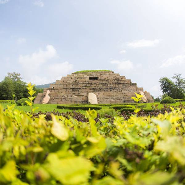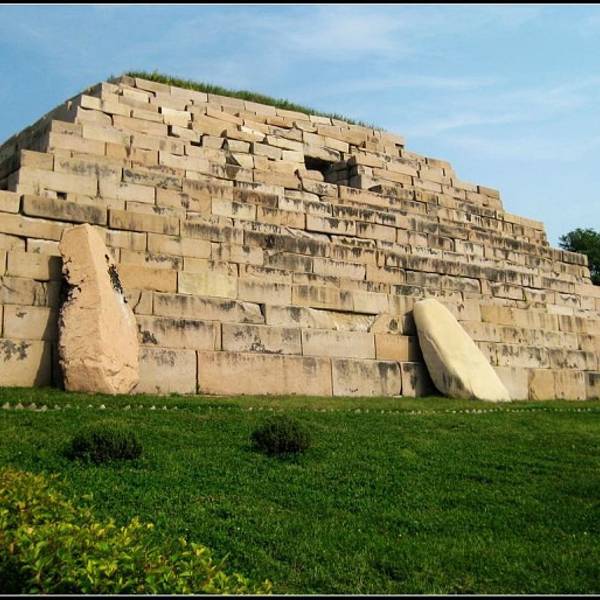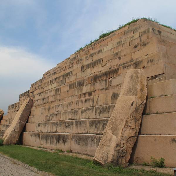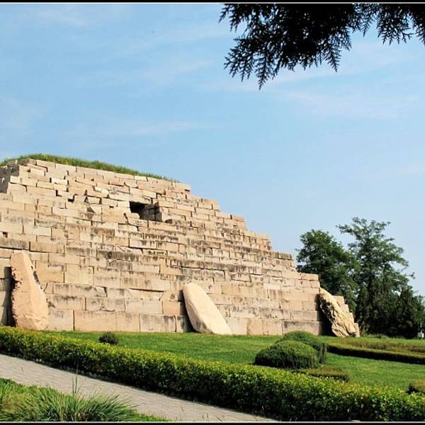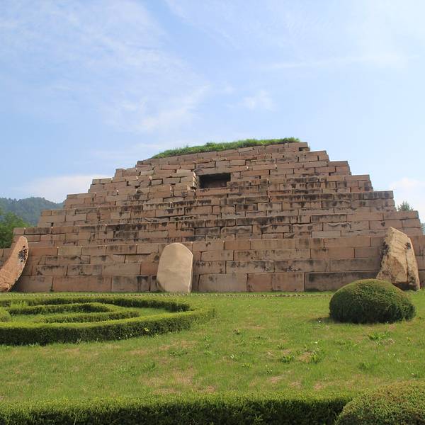于吉林省集安市东北约4公里的龙山脚下,因其造形颇似古埃及法老的陵墓,因此被誉为“东方金字塔”,推算为公元四世纪末五世纪初高句丽王朝第二十代王长寿王之陵。整座陵墓呈方坛阶梯式,高13.1米。墓顶面积270平方米,墓底面积997平方米,全部用精琢的花岗岩砌成。坟阶七层,每层由石条铺砌而成,每块条石重达几吨。第五阶有通往墓室的通道,盖棺石板重50多吨,每面三个护坟石各重10余吨,其势宏伟壮观。