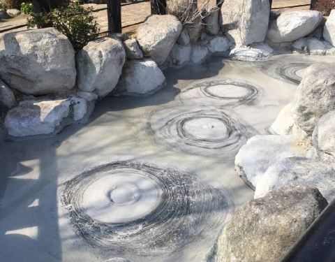 别府8大地狱的第一站。最吸引人的就数咕嘟咕嘟冒着白泡泡的温泉,看上去就像是火山岩泥一样。也有点像平时女孩子会做的白泥面膜。