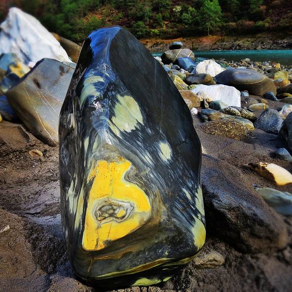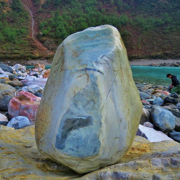 ...到怒江,土路极其陡峭湿滑,多亏这位大哥相助,我才得以下到江边,从另一个角度欣赏对岸美丽的雾里村从公路边下到怒江,土路极其陡峭湿滑,多亏这位大哥相助,我才得以下到江边,从另一个角度欣赏对岸美丽的雾里村。大哥敲敲打打,看中的石头便用江水清洗干净,下图的这块石头,图案像是坐着的女子。这是我最欣赏...从公路边下到怒江,土路极其陡峭湿滑,多亏这位大哥相助,我才得以下到江边,从另一个角度欣赏对岸美丽的雾里村。大哥敲敲打打,看中的石头便用江水清洗干净,下图的这块石头,图案像是坐着的女子。这是我最欣赏的石头,大哥说像一只小鸟。丙中洛相对六库更靠近怒江的上游,因此多巨石。这里一块石头,就有50-100斤之重。运回六库,是何等艰辛!大哥说上海肯定没有这样的石头,坚持要挑选一块让我抱回去,我连忙推脱,他又捡了些漂亮的小石头送我。我欲丢弃几块,大哥却严肃地告诉我,它们几千万年才形成这样的纹路,多不容易。于是我全部拿好,一路辗转寄到上海,放在家中的鱼缸。只要淋上水,石头便会再现美丽的回旋纹路,仿佛都能看到流淌的怒江水。随处可见的“猪肉石”,这种石头,大哥说在六库更多。 展开