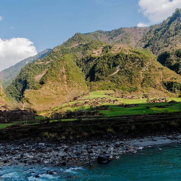 站在观景台上远眺,怒族人的木屋错落有致地建在山坡上,山坡上的庄稼一片葱绿,金色阳光洒满对岸,袅袅炊烟从村中升起,山村的宁静和秀丽跃然画中,景色美得醉人。真不愧为游人点赞的"瑞士田园风光"!三座桥见证了丙中洛的发展。近处吊桥已废弃;中间吊桥名叫朝红桥,以前的过江通道;远处的水泥公路桥为去年才修的新桥,今年2月才投入使用。茶马古道茶马古道美丽的雾里村 展开