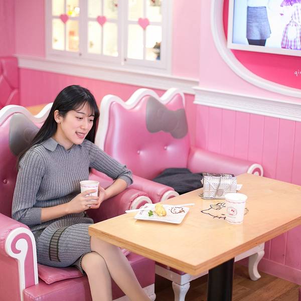 位于建筑物的2层,包括普通座椅席和沙发席在内的约60个座位。店内还有根据kitty猫的形象设计的沙发、kitty猫的各种图片等各种以粉色为基调的装饰品。店内一角还设有可爱的摄影地带,您可以尽情的拍照留念。店内有免費WIFI和充电插位。