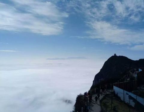 看着脚下浩瀚的云海,宛若身在佛国仙境,周边的群峰犹如海上的小岛,景色壮观美丽,运气好还能看到“佛光”峨眉山的最高处,登临此地,极目楚天,看着脚下浩瀚的云海,宛若身在佛国仙境,周边的群峰犹如海上的小岛,景色壮观美丽,运气好还能看到“佛光”。