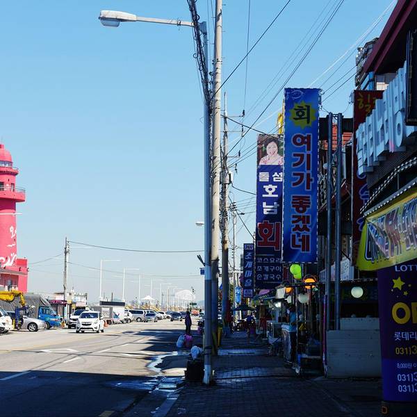 从新林站出发,经过舍堂站,在乌耳岛站下车,再坐公共汽车,到达了叫做乌耳岛综合鱼市场的地方。乌耳岛隔着一条路面对始华工业园区,还与沿着海边修建的海岸道路连在一起。