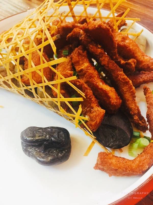 可爱的篮子🧺造型,海蜇头吃起来脆脆的,还有酒鬼花生,但是酱料比较酸爽,如果多加点蒜末就更美味了。