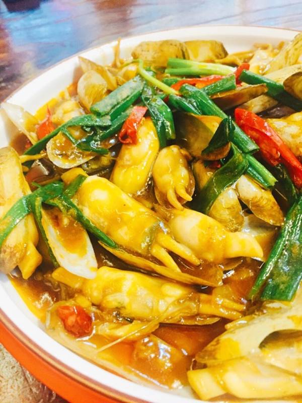 - 【特色美食】咸香金沙虾 爆炒老蛏。进来就可以看图片点餐,比较简单,还有很多海鲜可以选择。山峡石烤肉实用