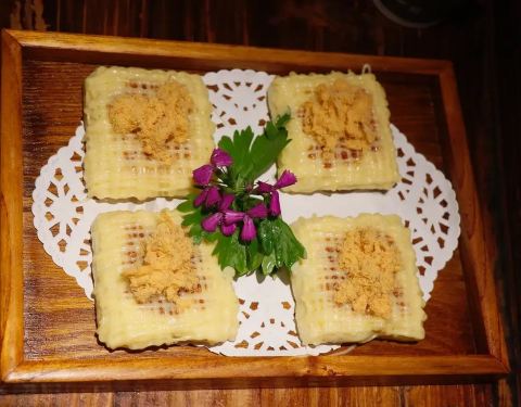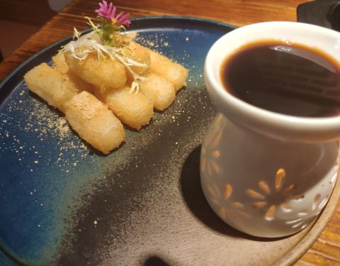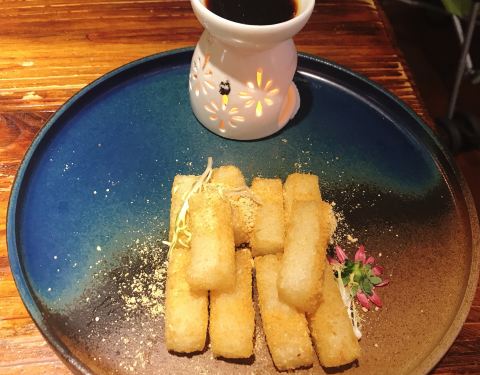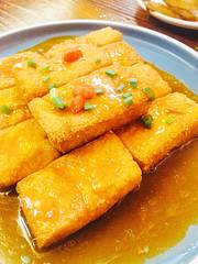 豆腐炸得外酥里嫩,酱汁不错,单独吃口味比较清淡,但是里面的豆腐真的很嫩,比较像日本豆腐。