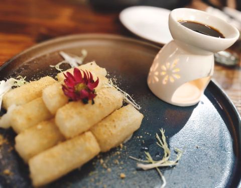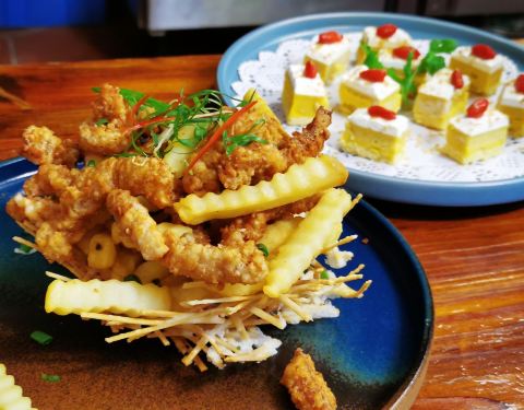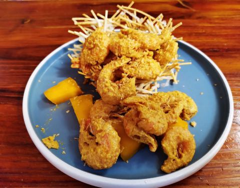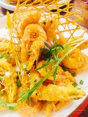炸得金黄的鲜虾,可以一整只吃掉酥脆可口,又鲜甜。