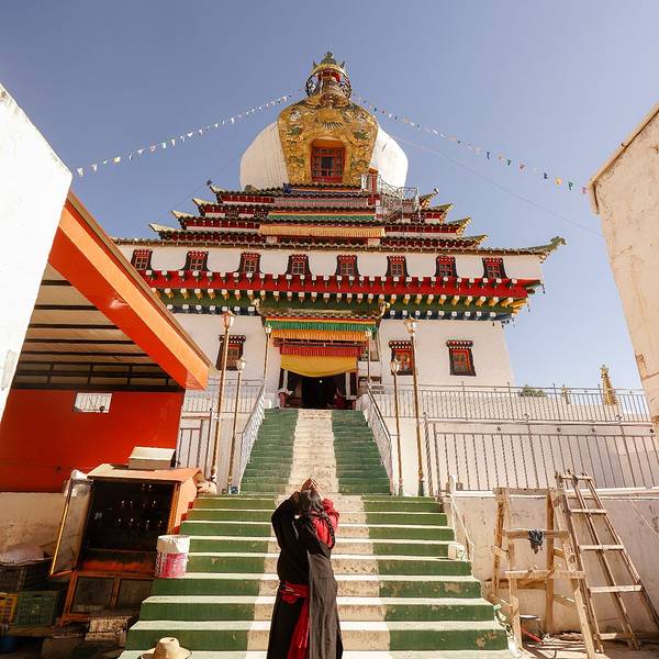 在县城内可坐出租车到达格尔登寺,也可以坐三轮车前往,从城中心到格尔登寺大约是6元。因为有下坡路,所以在阿坝县城内三轮车会比出租车贵,上车前务必谈好价格。