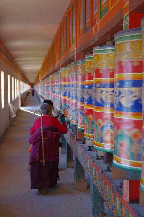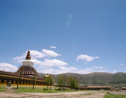 在县城,挺大的寺院,后面的白塔特别醒目。寺院的四周是一圈转经桶廊道,转一圈下来,少说也有上万步在县城,挺大的寺院,后面的白塔特别醒目。寺院的四周是一圈转经桶廊道,转一圈下来,少说也有上万步。阿坝藏区,喇嘛寺众多而且金光闪闪,说明今日藏民之富有。
