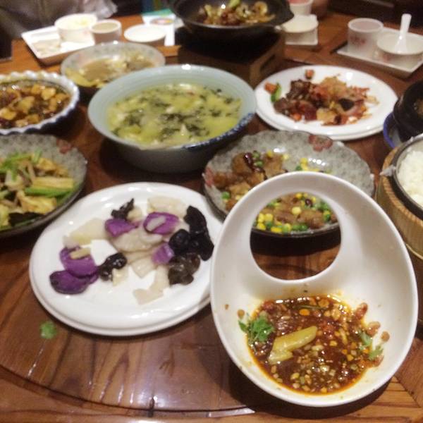 位置:姑妈家位于昆阳镇,坐高铁或者动车到鳌江站下车,然后打车20-30元至平阳县的昆阳镇,必须坐车的喔。昆阳镇是平阳县的行政中心,而姑妈家位于小镇的繁华地区。左边肯德基,右边有银行,店面朝马路,门店古色古香的装修风格,一眼就能找到。 一进门,入眼的便是假山流水,大堂全木质桌椅,各式各样的摆台彰显店主的用心。餐厅包间,满足聚餐的小团体客户。菜单仿外婆家,也是现在大众纸质菜单,不过没有正式的菜单图片册,只有菜单名,对于只会图片点菜客户有点困难。菜评:菜价的性价比很高,菜色也有创新性。印象深刻的就是油条也作为配料做成一道菜。 钉螺:五星推荐 口水鸡:五星推荐(不是川菜系) 木桶饭,香甜可口。甜点不建议点,奶油太差劲了!!! 干锅菜味道还不错 香芋山药木耳味道清淡可口 西瓜汁味道还不错 麻婆豆腐不是很辣,能接受厕所的门,是我见过最特别的,栓木式。上了洗手间特意拍了一张。 长时间蹲坑的客户,还在木质厕所门上留言了,各式各样的签到,这就是传说中的厕所文化。大理石的台面,复古的水龙头,店家的装修设计很注意细节哈。