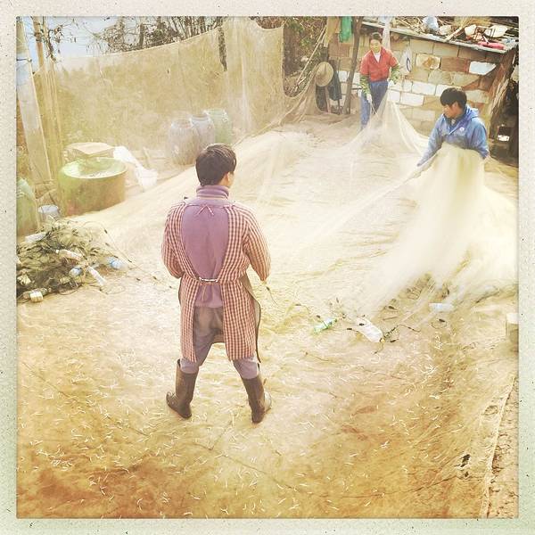 第四天一早, 我们在农家乐吃了简单的早餐之后, 就出发上路, 今天依然是一个好天气。早上的日出。早上收网回来的渔民, 在收获渔网上挂满的银鱼。途中还能遇到冬季在抚仙湖, 进行高原训练的外地自行车队。这附...