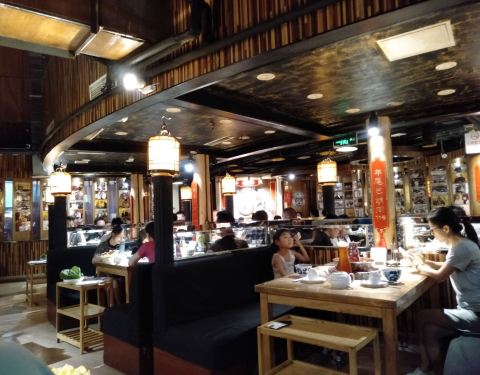 位置还算好找,顺着地图一路走来 在同一首歌ktv下面,没人在门口迎宾 进去了看到两个服务员在说话也没给指引 到了里面有人给找了空位坐下,等人到了去门口点的菜,这家店点才很有意思,所有的菜品都展示出来,什...
