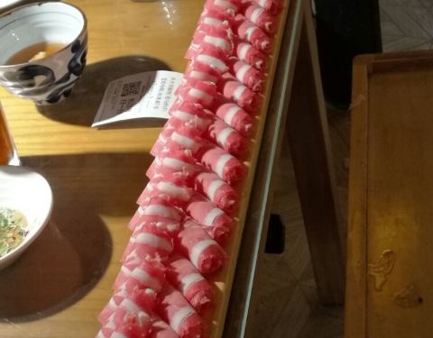 价位便宜,羊肉不错 很新鲜 ~ 一米板的上菜方式小创新 就是包间里没地方放呀 不方便涮肉