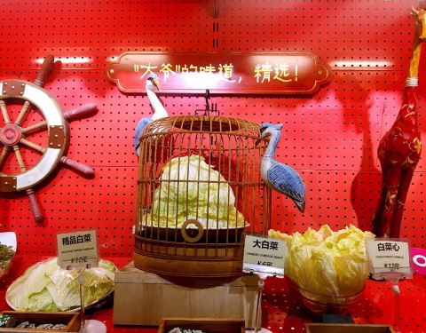 位置还算好找,顺着地图一路走来 在同一首歌ktv下面,没人在门口迎宾 进去了看到两个服务员在说话也没给指引 到了里面有人给找了空位坐下,等人到了去门口点的菜,这家店点才很有意思,所有的菜品都展示出来,什么样子量有多少以及价位 都一目了然,很多火锅店点菜不知道量多少最后剩下很多会浪费,这家店还不错。 点菜: 清汤锅底(18元):很漂亮的红色景泰蓝锅子,上面还写着“羊大爷”三个字,锅底放的材料单放在一个碗里,还真不少东西,香菇、虾米很多; 麻酱味碟(6元*2):小孩可以不用点小料,端上来的小料是调制好的,味道偏咸,我们自己盛了纯麻酱蘸着吃,还能减点咸度; 糖蒜(3元):妈妈点的,看着挺大的,一份两个,小一点的是一份三个; 羊肉串(8元*4):真是特别好吃,串特别大,撒的辣椒面看着辣,其实还可以,羊肉肥瘦适中,特别香; 羊肉筋(68元):要了一米板的,特别长,真的有一米那么多,羊肉筋是肥瘦的,摆在上面看着特有食欲,涮好以后特别嫩,没有膻味; 牛羊成群(22元):小板的,都是大片肉,是把牛肉羊肉切很薄放在一起,夹起来才能看见,也是很好吃的; 鸭血(12元):切的块大,涮好了挺好吃的。