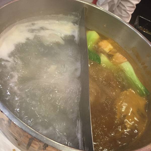 人少的用小锅一人一个,人多用大的鸳鸯锅,可以选两种汤底,一共4种,清汤、辣汤、不辣的、冬荫功汤,选哪种也没多大区别,反正味道都很淡。酱料有好几种,味道不错。鲜鱼片,鲜虾好吃,还有鱼丸和蟹棒、鱼豆腐。果汁也随便喝。