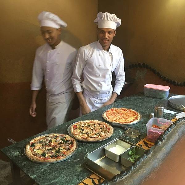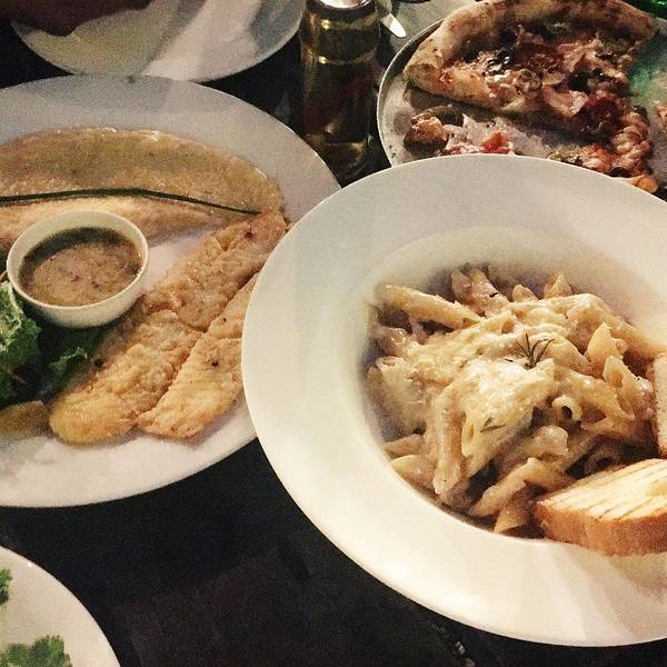 除了我和阿张,其他小伙伴都是今天的飞机,吃好饭,都回我们的酒店休息,等时间去机场。 晚上和尼泊尔好友约了去roadhouse cafe 吃饭,好开心,第三次进这家店,终于能吃到食物了。 这家餐厅的pizza很有名,是必点的。 我们点了一个pizza,一份通心粉,一条鱼,三杯喝的,应该消费2000卢比左右的样子。 蛮推荐的一家餐厅。
