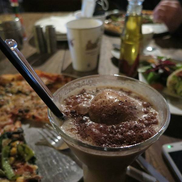 其他小伙伴们在roadhouse cafe 吃披萨,我们便过去坐坐,第二次去这家店,和第一次一样,又是点了一杯饮料。 这种相对情调点的餐厅,饮料也比外面会贵些。