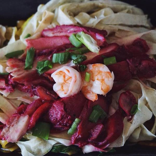 乐客丹海滨购物中心内的美食城。星洲炒面,上面红色的那些竟然是叉烧肉