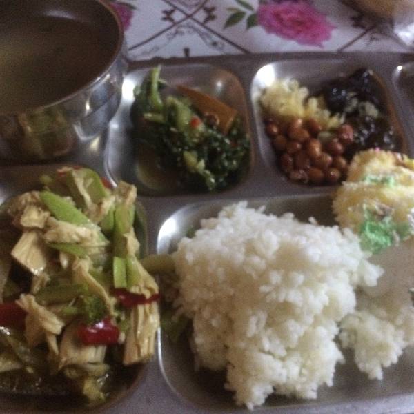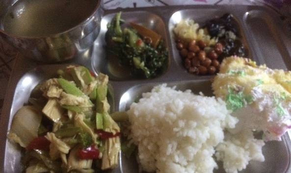今天晚饭相比往年算是相当丰盛的了!而且还有香客送的大蛋糕!