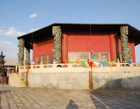 五台山东台顶上的寺庙,东台顶也叫望海峰,因此寺庙叫望海寺,正殿内塑文殊菩萨像。