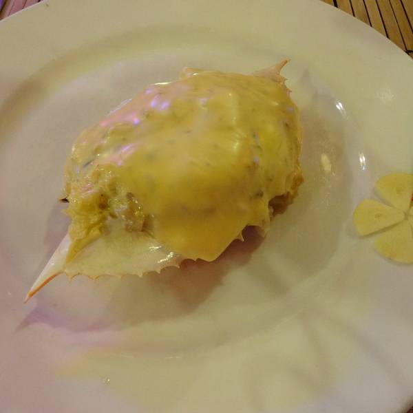 螃蟹蒸黄酱 海鲜烧烤 春卷 酸甜鸡肉 梭鱼咖喱